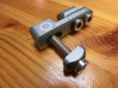 ごく小さいチェーンリングを使いたいと思ったが、フロントメカ取り付け台座がフレームに固定されていて望むような低い位置にフロントメカを下げられない、という問題を解決するアイデア小物です。