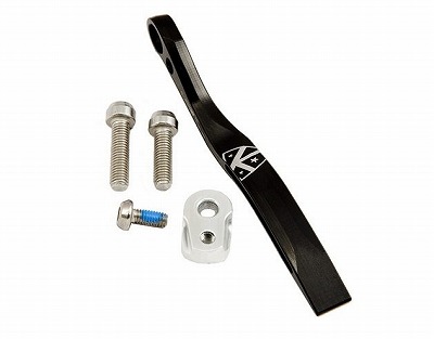 変速機の調整不良はもとより、変速したちょうどそのとき段差を通過してチェンが揺られたなどという不運な場面でもフロントのチェーン落ちは起こります。この小物はチェーンが内側に落ちようとするのを押し返してチェンを落ちられないようにする仕掛けです。