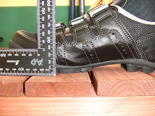 4)足裏がほぼ水平になるように靴をセットします。このとき水平な場所を用い、また適宜かかとの下にものを挟み込んでかかとの高さを微調整します。