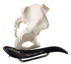 この問題に対して自分が見つけたのが、特殊な形状を備えた一部のサドルです。自分が愛用しているのはセラSMP(イタリア)の製品です。身体の”おまた”の部分でサドルに圧迫されて不快感が発生するのは実際には体のセンターライン部分に位置する一部の柔らかい箇所です。この部分に神経や血管はじめデリケートな構造が集まって走っているためです。そこでこの部分に接するサドル表面に大きく穴をあけて圧力を逃がし、そのままでは今度は座骨結節側(骨盤後ろ側)に圧力がかかりすぎて不快感が生じるので、サドル表面にいわばハンモック状に前後への湾曲をつけ、骨盤下側の湾曲が全体として前後に長くサドル表面にフィットするような”くぼみ”を設けているのがこのSMPの製品の特長です。