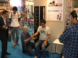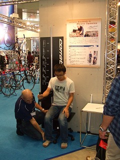 今シーズンからダイワ精工で取り扱いされるドイツのコラテックでは、熟練デザイナー、マウロ・サニーノ氏による採寸の実演がありました。乗り手の体格と乗り方とに合わせてバイクのセッティング・設計をすることは非常に大事なので、こういう取り組みが各メーカーにも広がって欲しいものです。