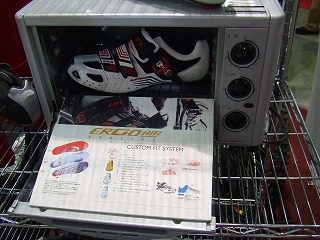 シマノが07シーズンに先陣を切ってスタートしたシューズの加熱カスタムフィット市場に、思わぬ伏兵が登場。ルイガノのシステムはシステム対応の靴をオーブンで65度で15分加熱し(長い!)ライダーに履かせて(熱くないよう靴下着用)自然冷却させるというもので、バキュームコンプレッサー(高い!)が必要なシマノに比べて導入がしやすい。おそらく他社も必ず追随すると思うので今後が楽しみ。導入機材のコストは販路が広がるかどうか(多くの小売店で実施販売できるかどうか)の分かれ目なので必ずポイントになります。