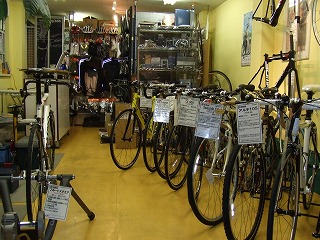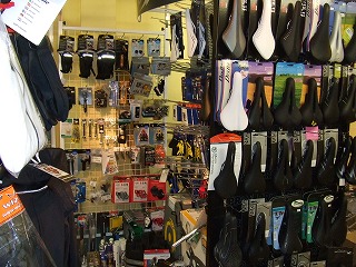 (初心者から中級者まで、必要な品は一通りご覧いただけます。とくにチョイスが難しいサドルは手頃なものを主体に多数在庫) |